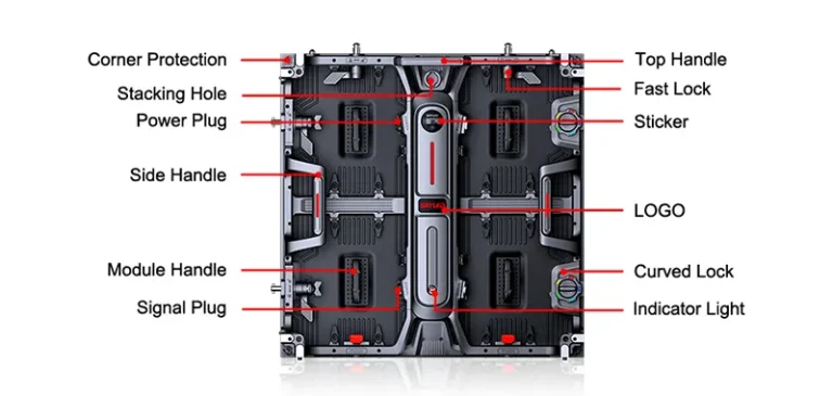 Different from the soft connection of the SRYLED RA Series LED display screens, the GOB LED screen belongs to modular LED display panel.
