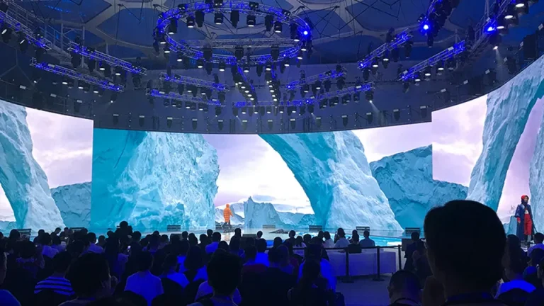 With curve design, GOB LED Display screen can make both inner and outer arc. To create a circular LED display, a total of 36 cabinets are required.
