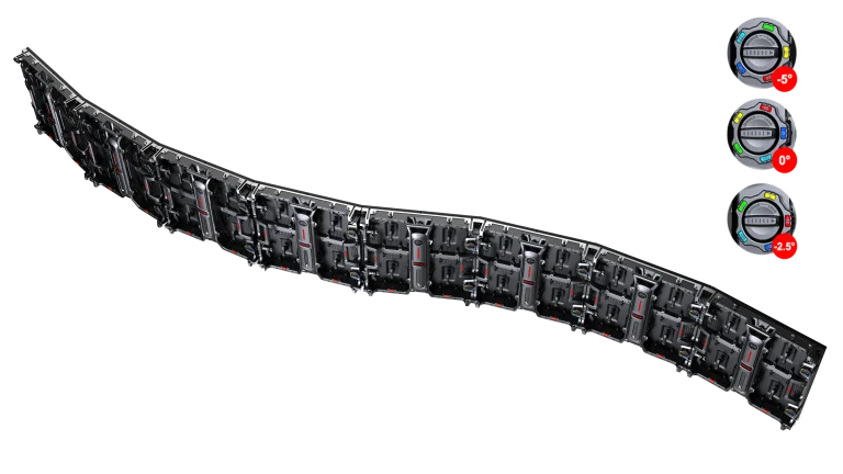 With curve design, R series modular LED display panels can make both inner and outer arc. To create a circular LED display, a total of 36 cabinets are required.