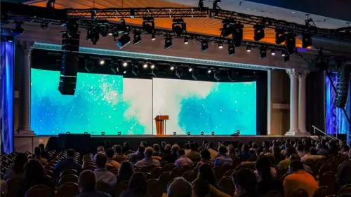 Modular LED displays are versatile and can be used in many settings, including stages, concerts, weddings, product conferences, etc.